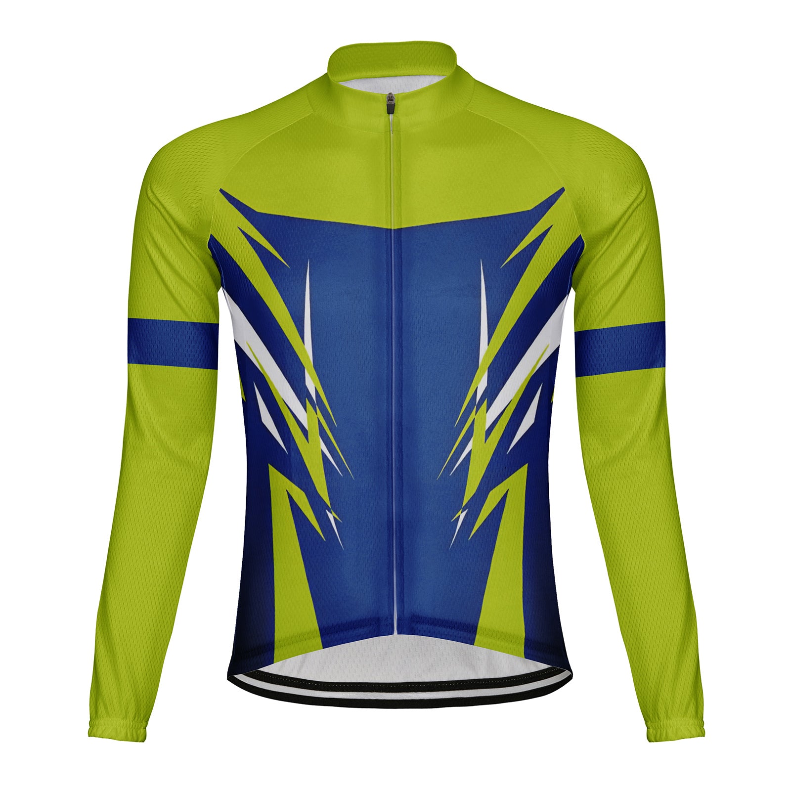 Customized Blue Green Dynamic Contrasting Color Men's Winter Thermal Fleece Cycling Jersey Long Sleeve