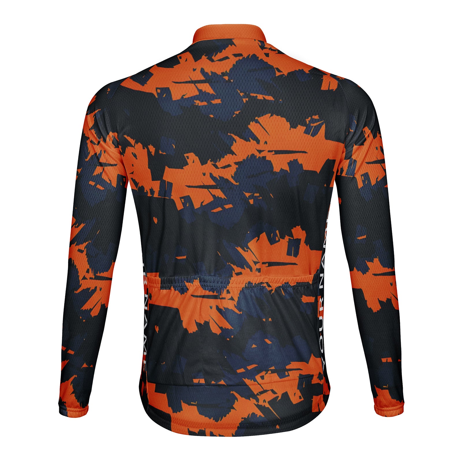 Customized Orange Camouflage Men's Cycling Jersey Long Sleeve