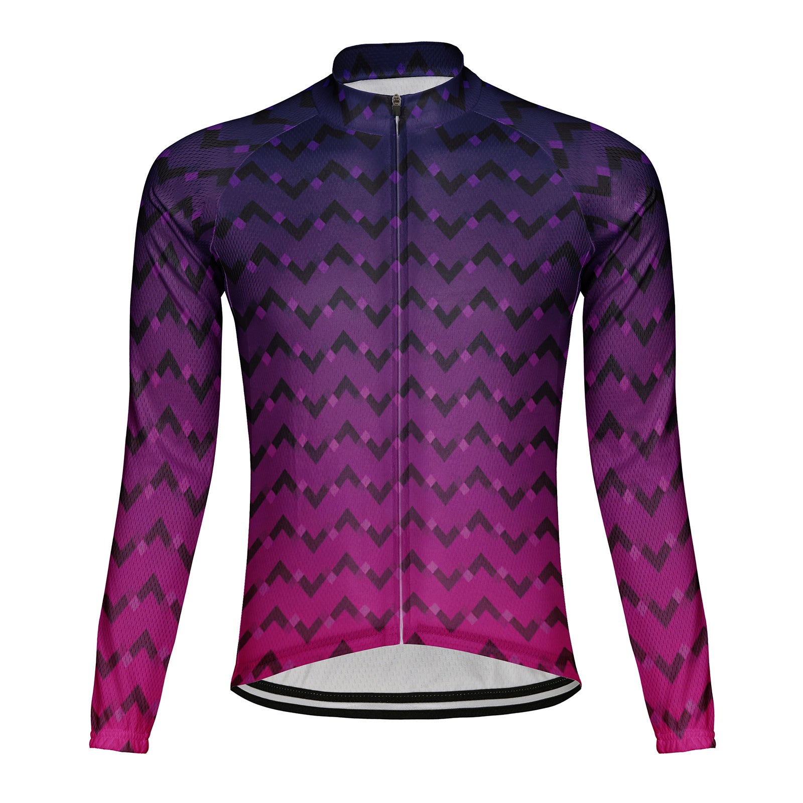 Customized Purple Pink Gradient Wavy Line Men's Cycling Jersey Long Sleeve