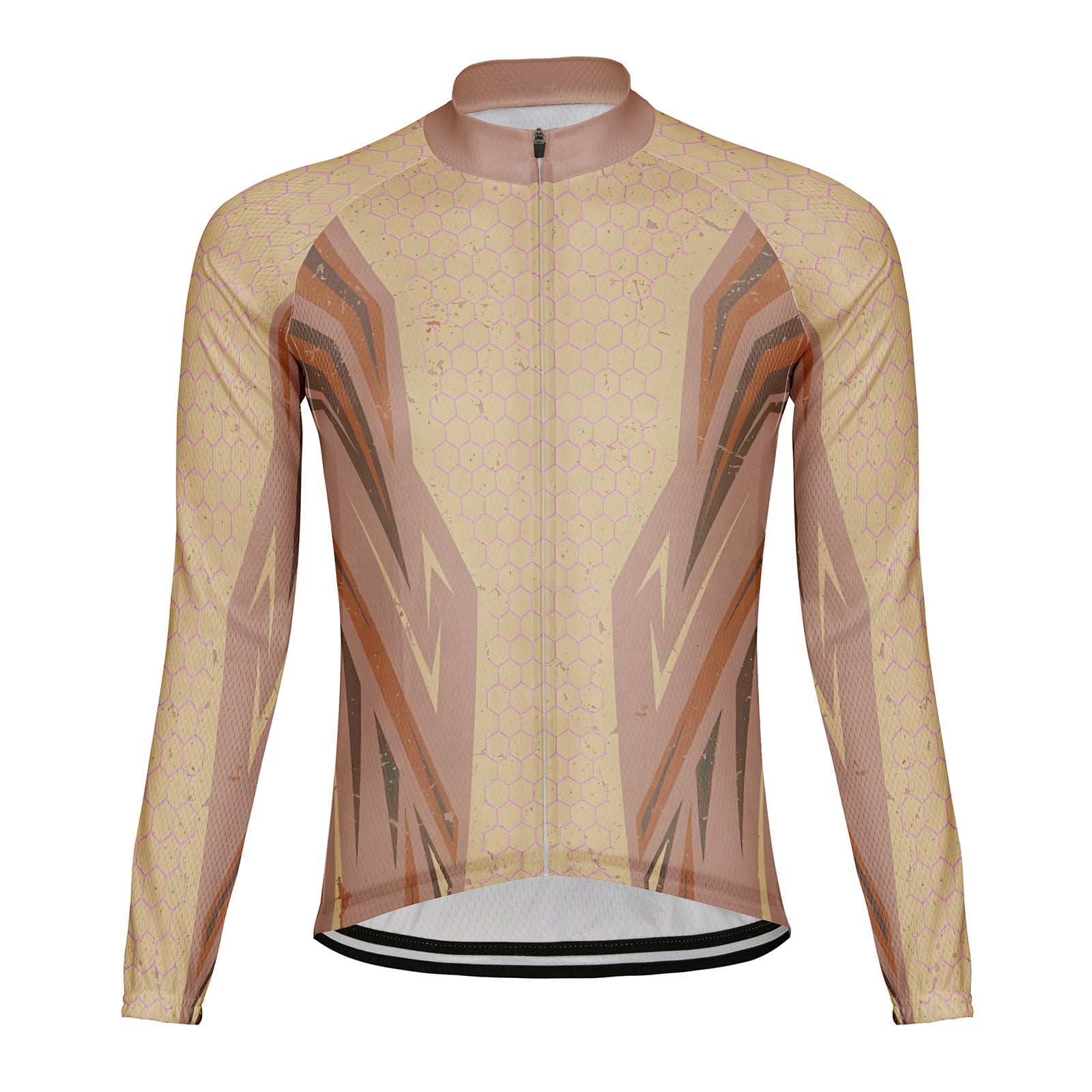 Customized Warm Brown Honeycomb Men's Cycling Jersey Long Sleeve