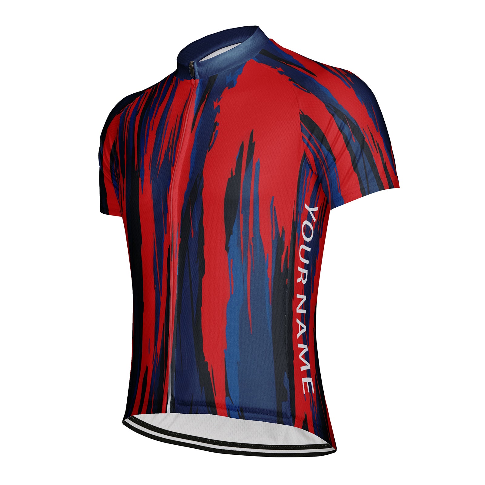 Customized Red And Blue Cracks Men's Cycling Jersey Short Sleeve