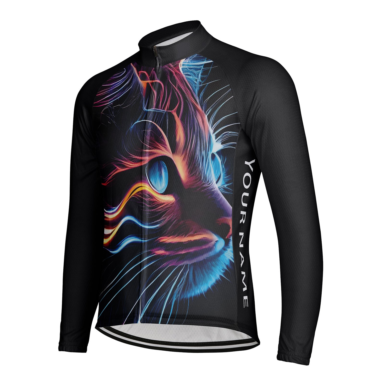 Customized Cat Men's Winter Thermal Fleece Cycling Jersey Long Sleeve