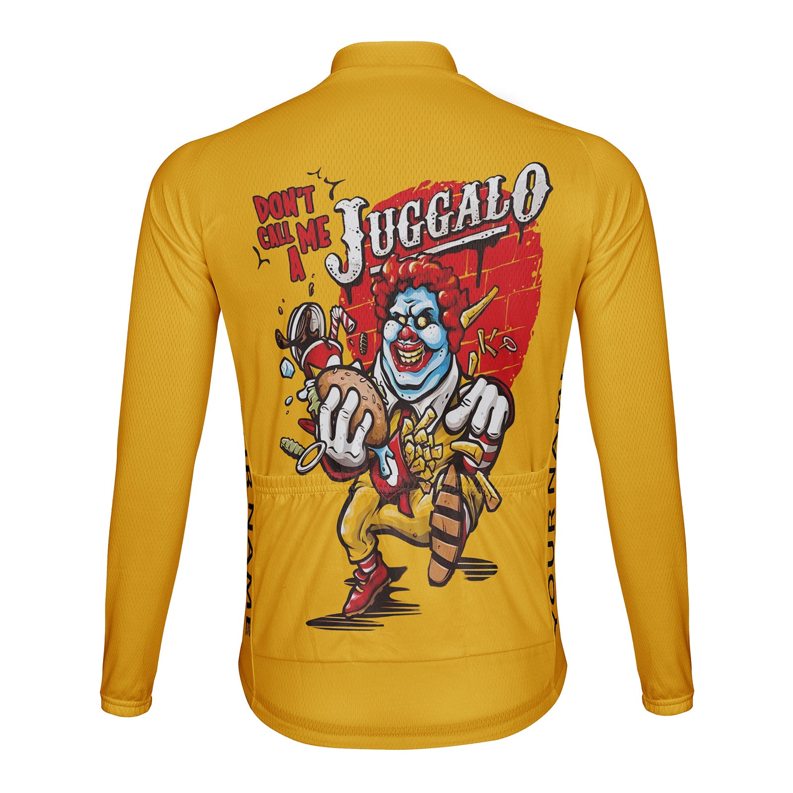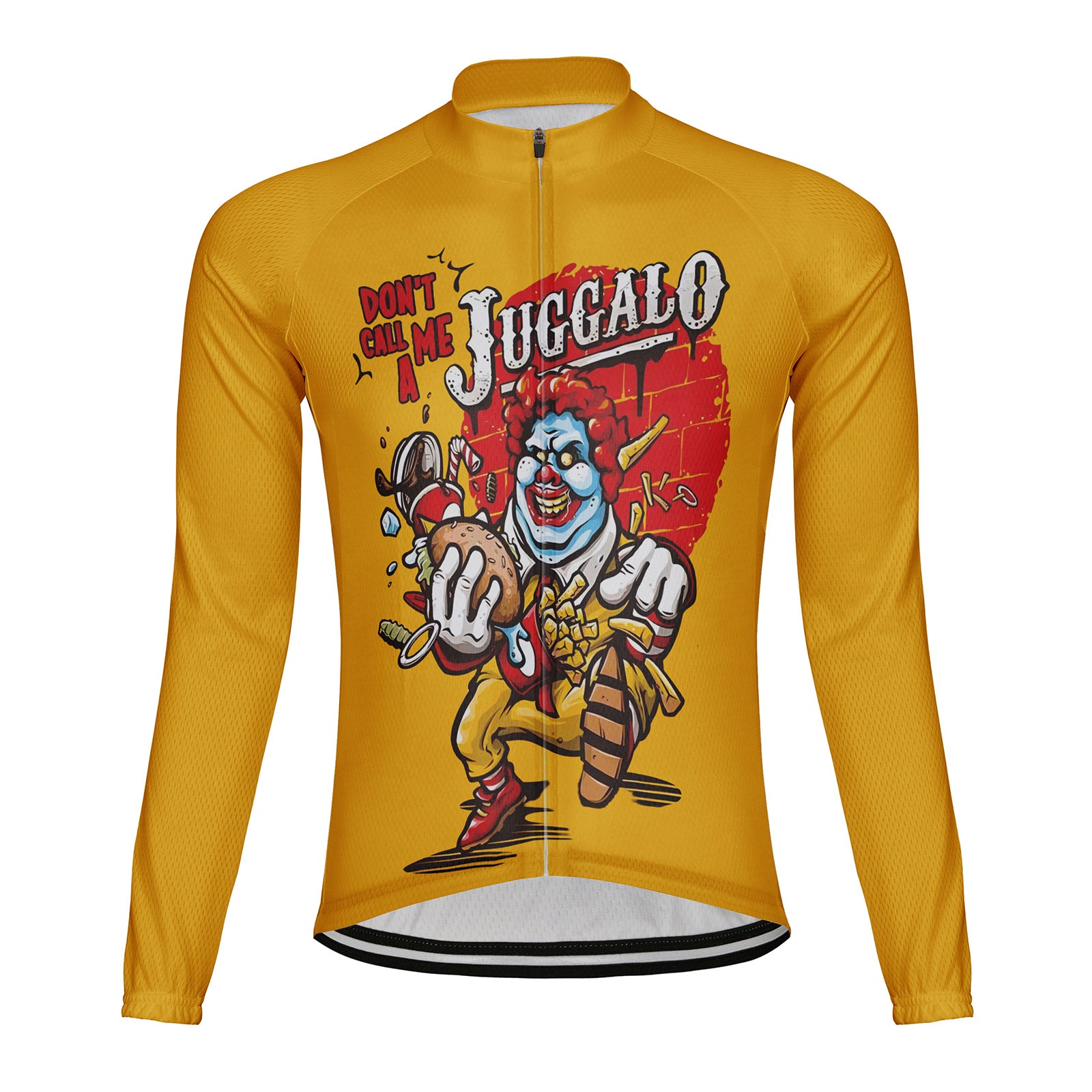 The Don't Call Me A Juggalo cycling jersey with fleece lining keeps you warm.100% polyester and stretch fabric.temperature range 41 °F to 68 °F. suitable for spring, autumn and winter riding