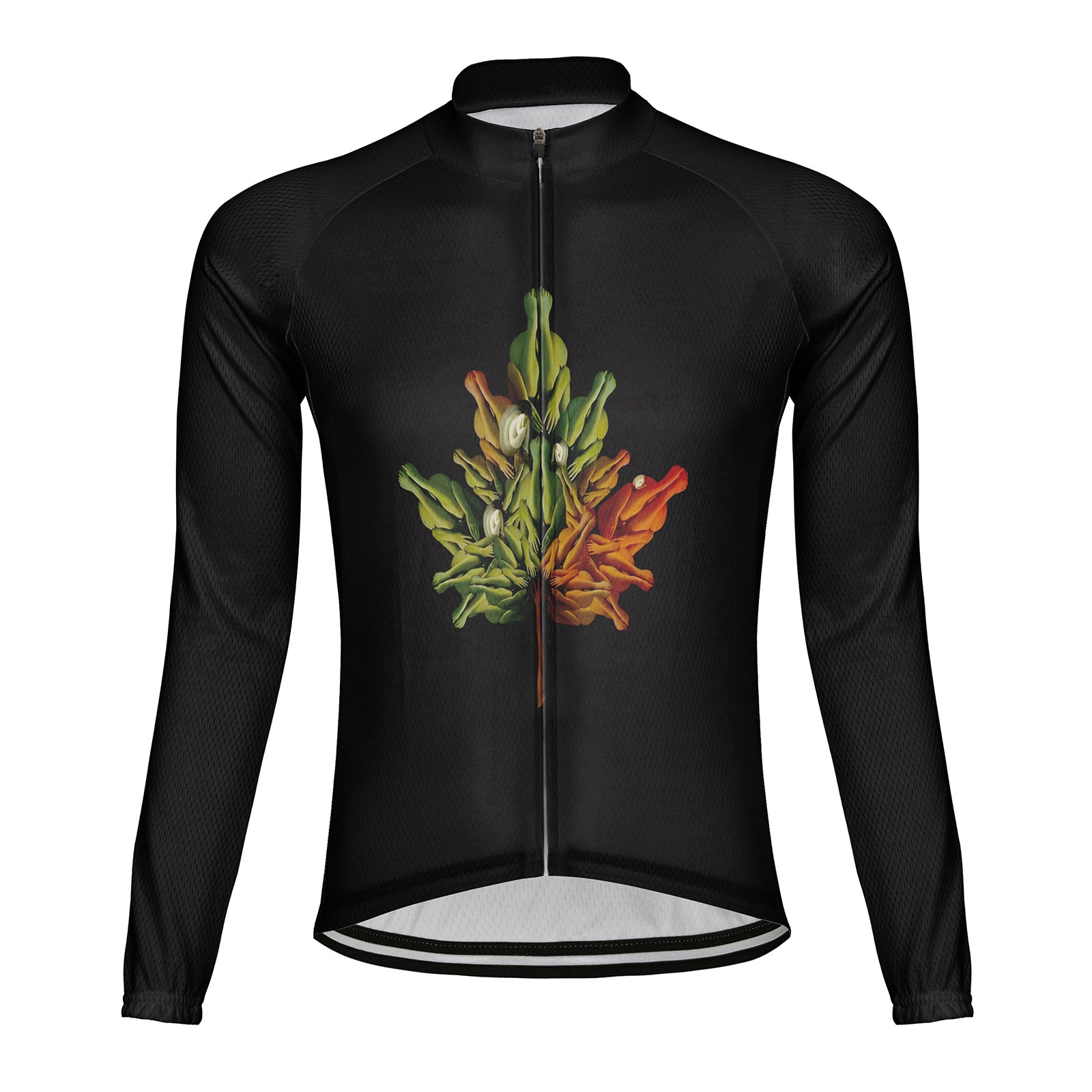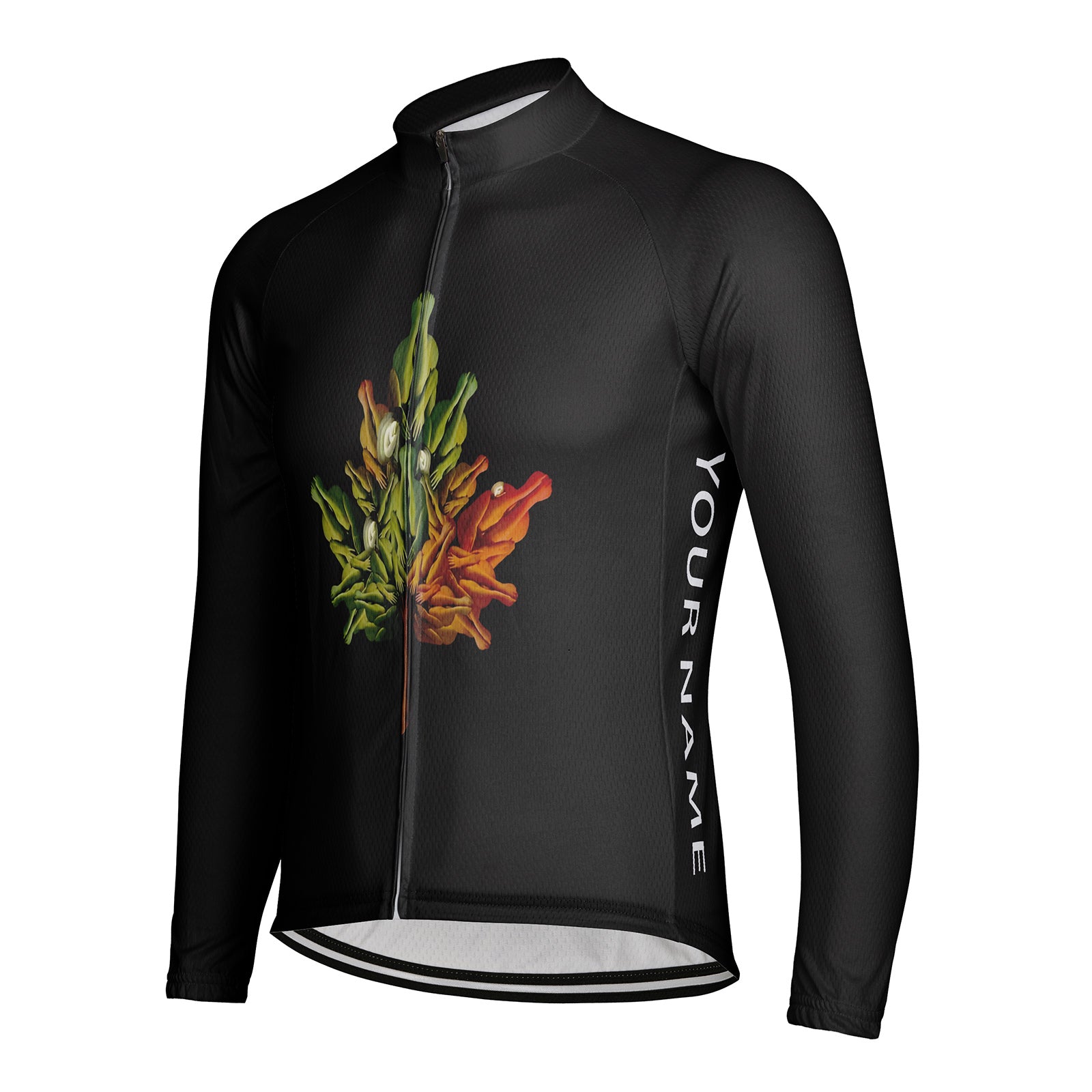 Customized Human Maple Leaf Men's Winter Thermal Fleece Cycling Jersey Long Sleeve