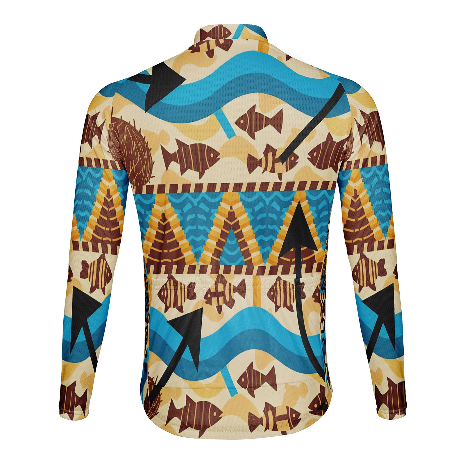 Customized Pacific Islander Weaving Men's Winter Thermal Fleece Cycling Jersey Long Sleeve