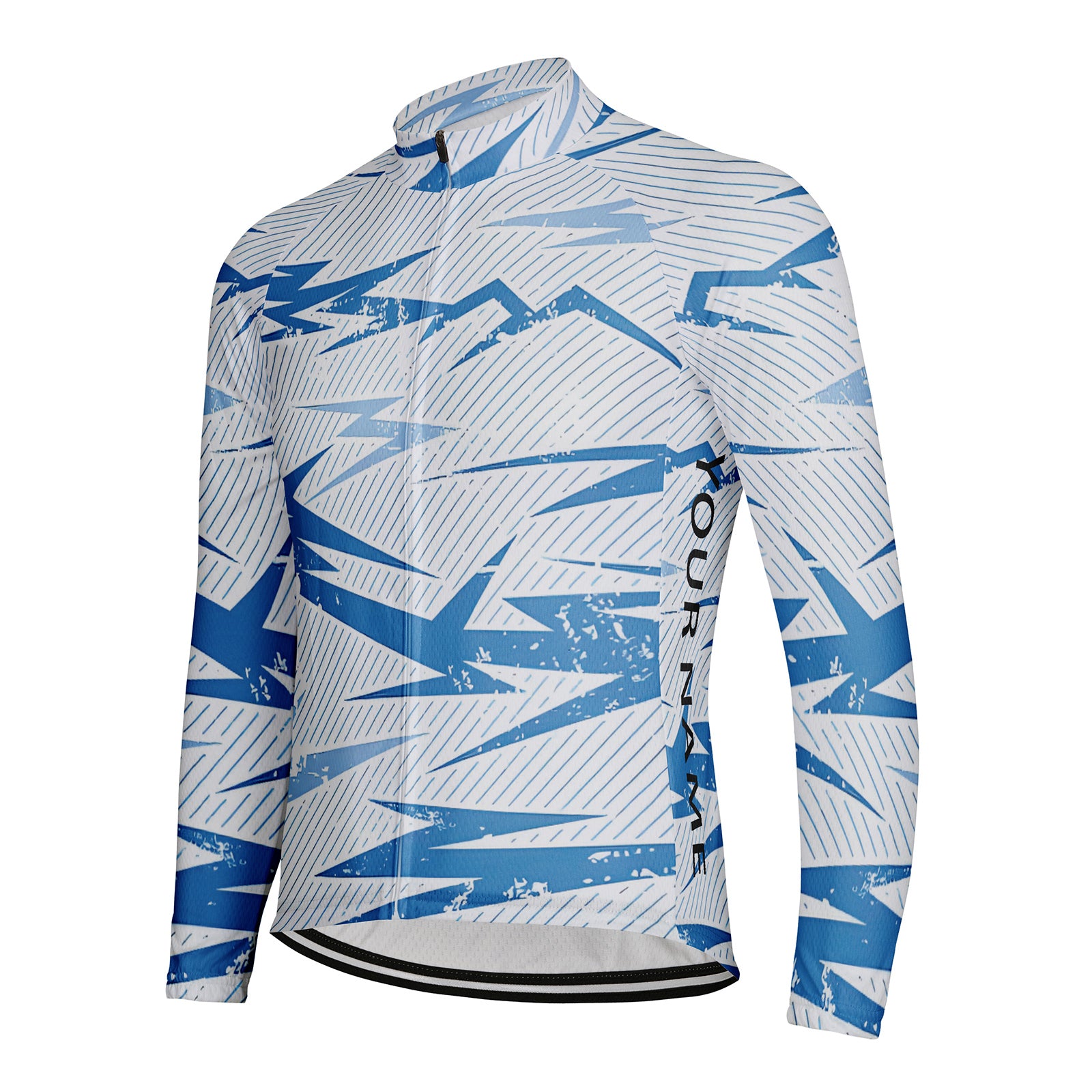 Customized Blue Charm Retro Line Men's Cycling Jersey Long Sleeve