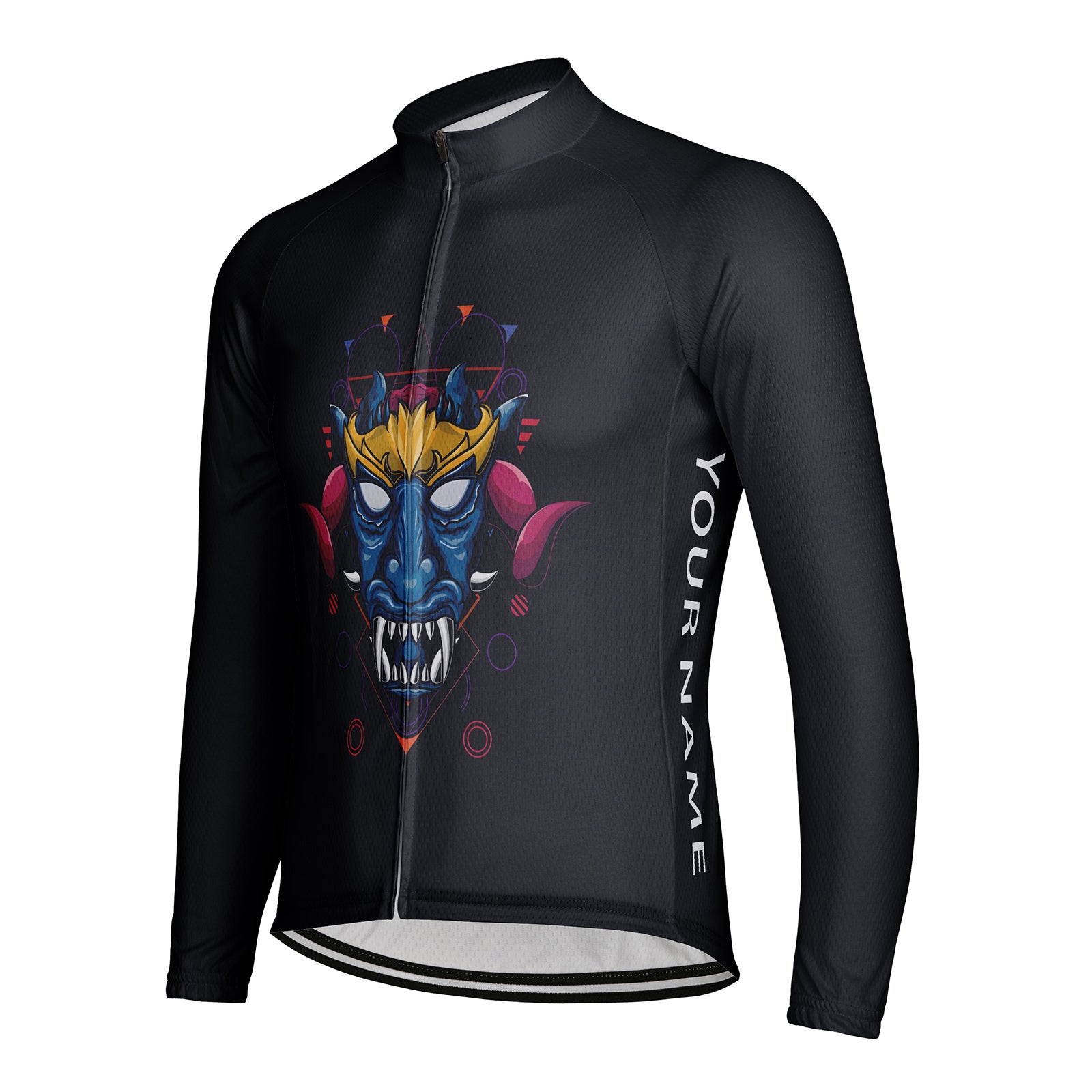 Customized Blue Faced Demon Head Men's Cycling Jersey Long Sleeve